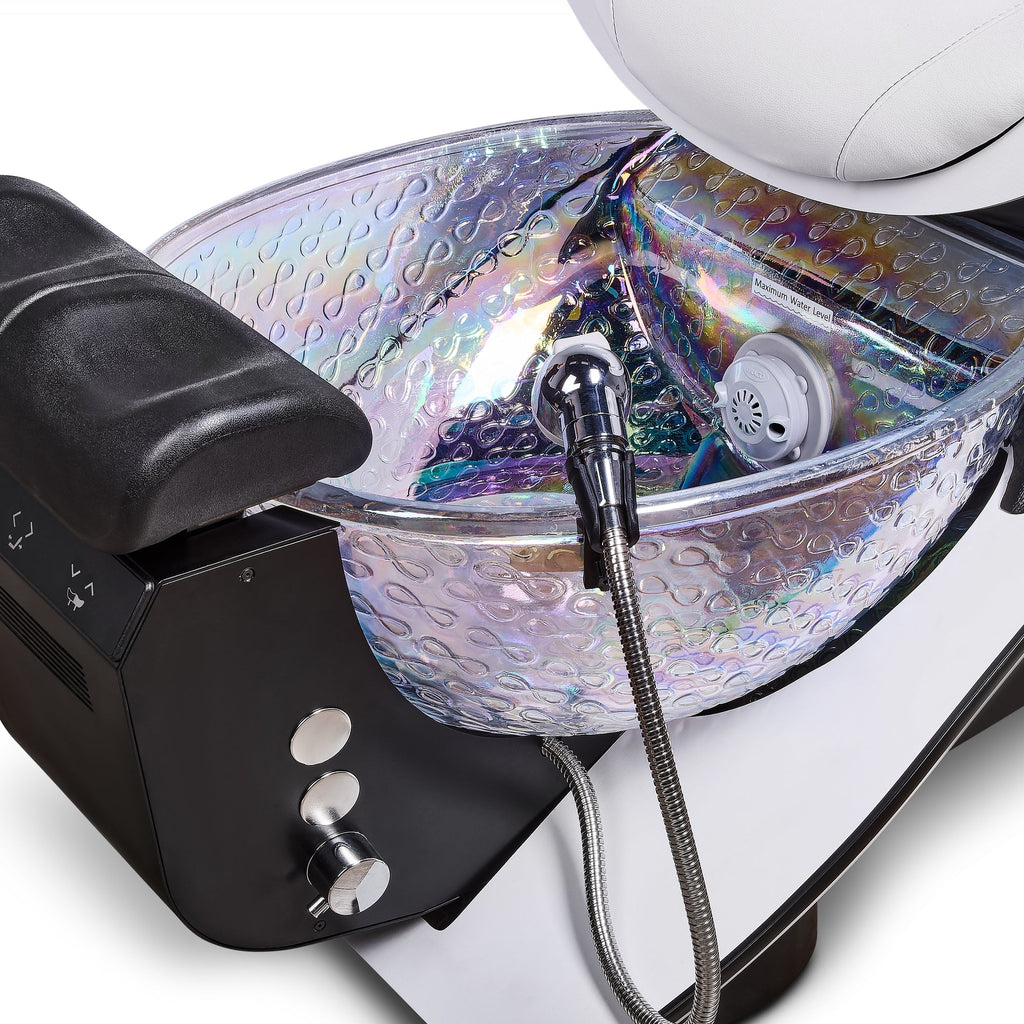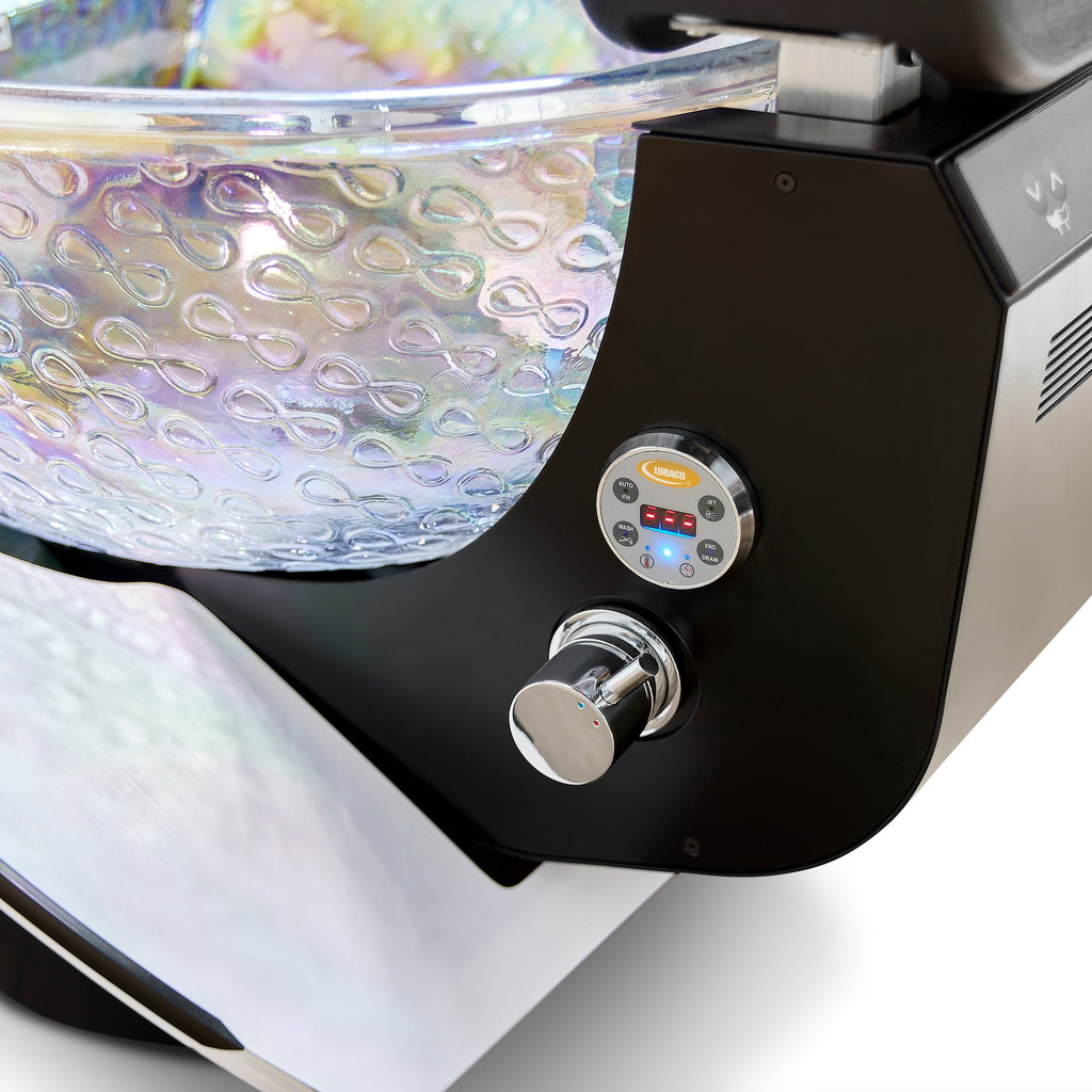 - Attractive, easy to sanitize, reinforced LED-lit glass footbath