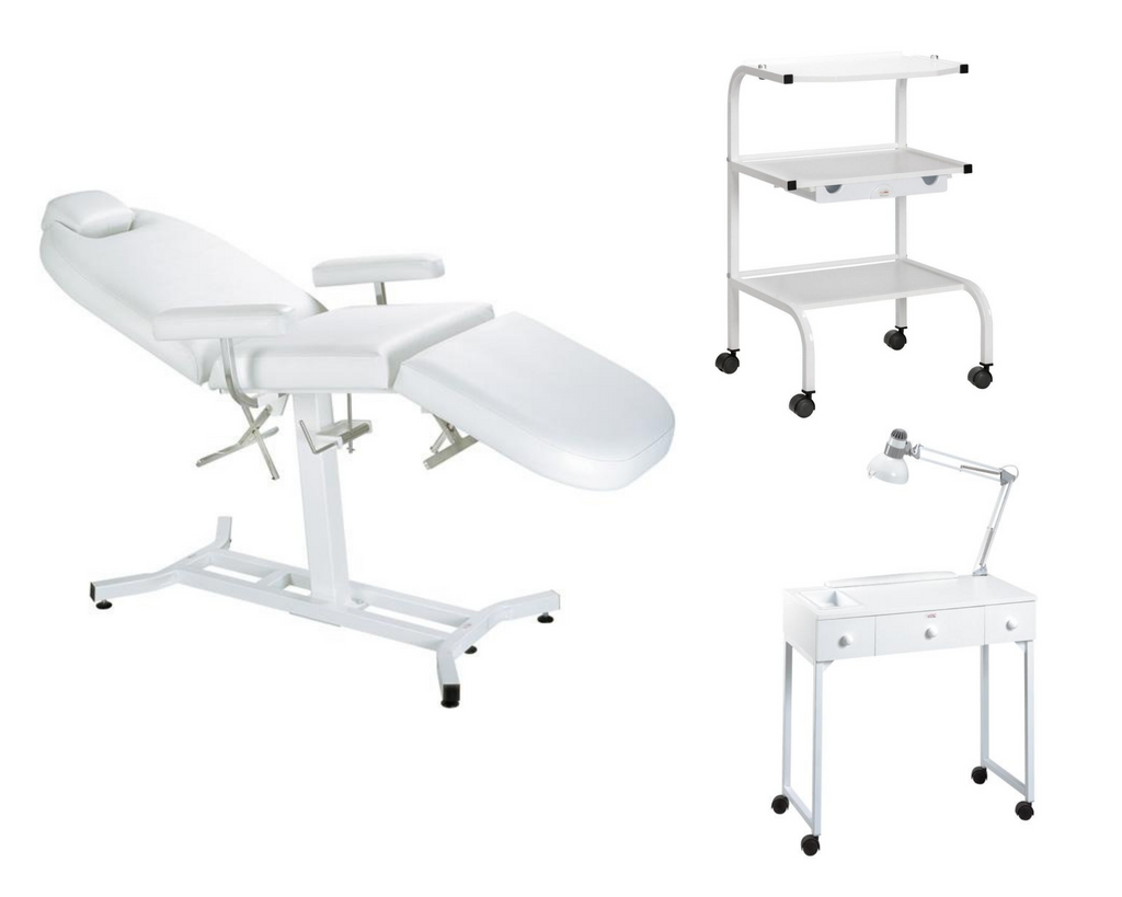 The Equipro Deluxe Spa and Massage Package combines three essential professional pieces to elevate your spa or salon experience. This all-in-one package includes the Deluxe Poly Comfort Facial Bed, Deluxe Manicure Table, and the TS-3 Deluxe Trolley — all designed to bring comfort, efficiency, and style to your workspace. Each component is crafted with quality, durability, and ease of use in mind, making this package perfect for estheticians, massage therapists, and nail technicians who want a seamless, functional setup.