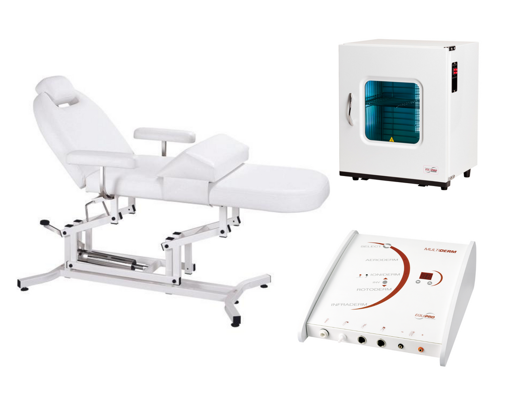 The Equipro Standard Spa and Treatment Package offers a perfect blend of comfort, efficiency, and versatility for any spa or salon professional. This all-in-one set includes a premium hydraulic facial treatment bed, a spacious towel warmer with sanitizer, and a multi-functional 5-in-1 facial machine. Designed and made in Canada, this package delivers everything needed for quality client care and effective treatments in a compact footprint.